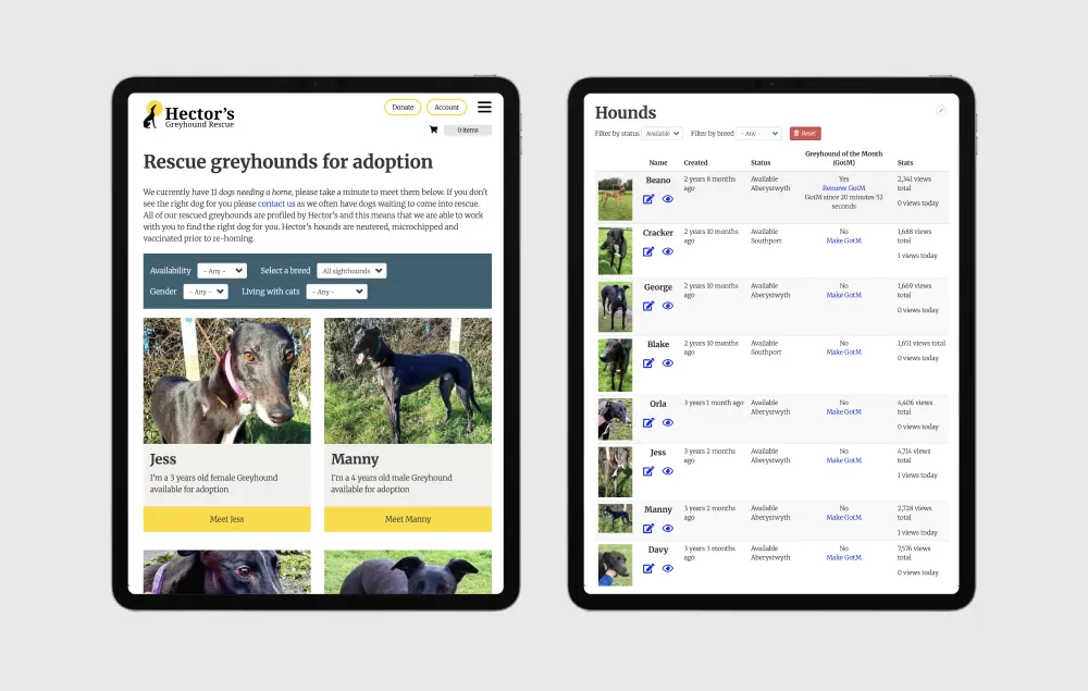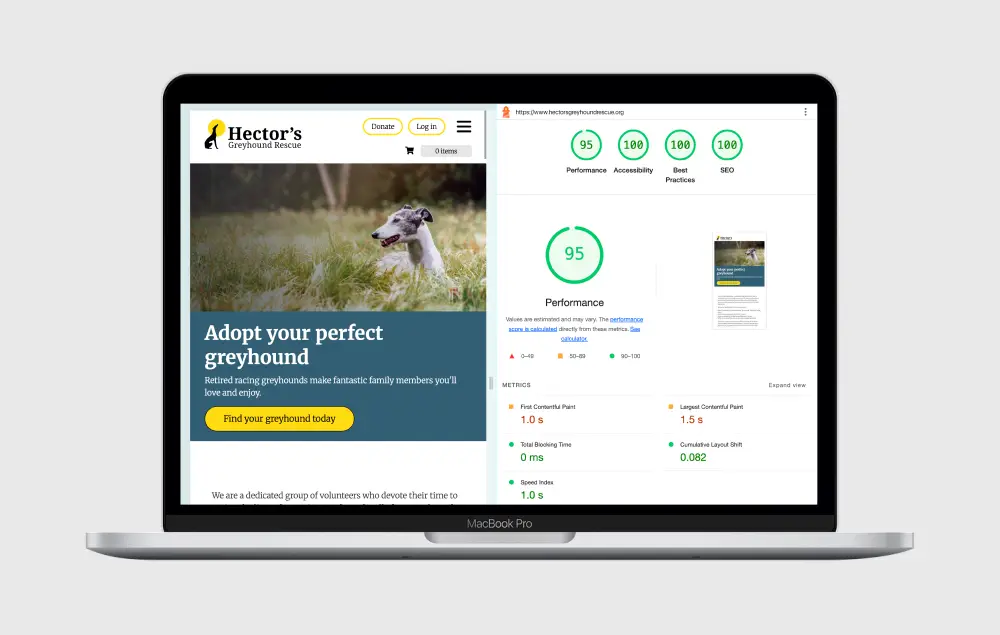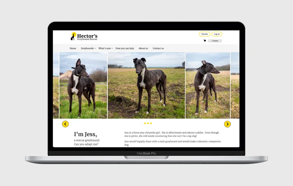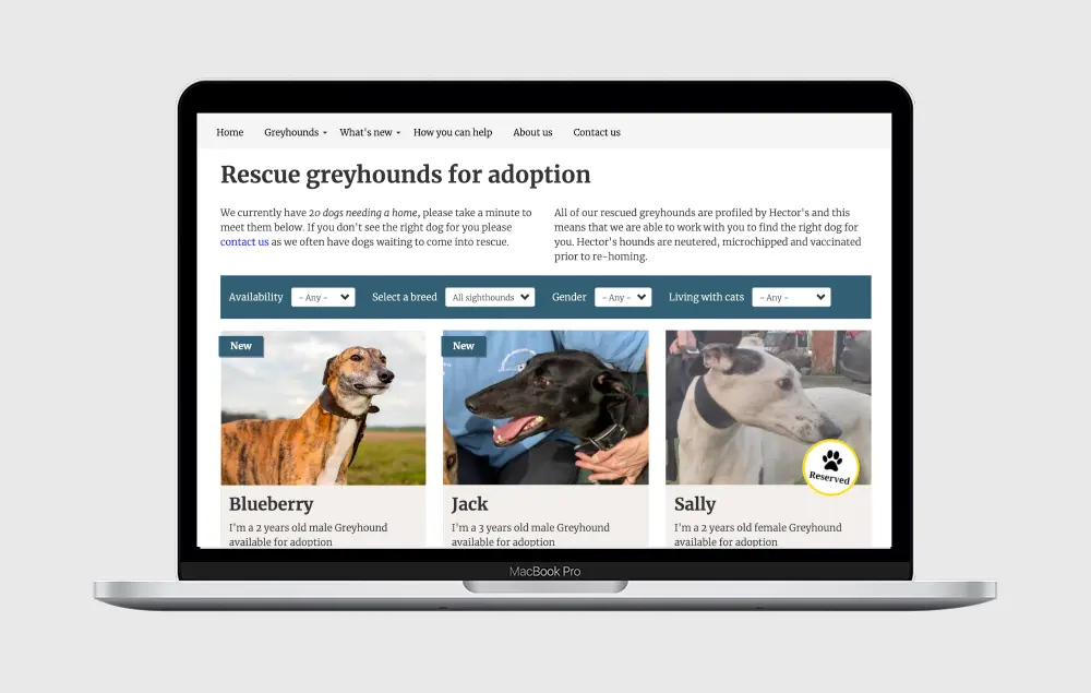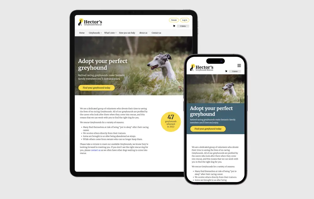Hector’s Greyhound Rescue, a UK charity, rescues and rehomes retired greyhounds from the industry. Their outdated, non-mobile-friendly website hindered user experience and search engine ranking.
